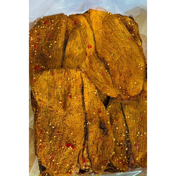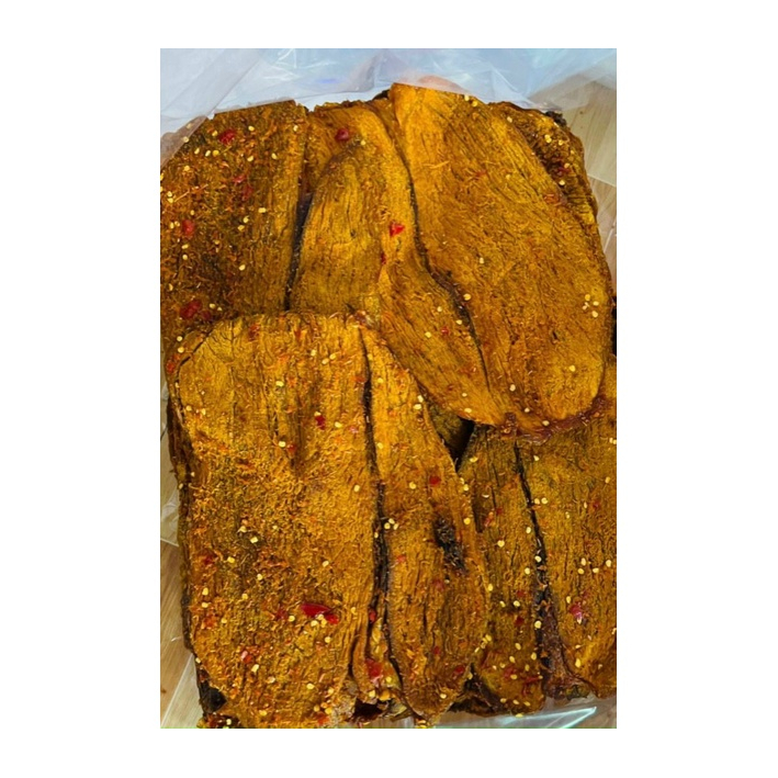 Thịt bò ướp chung với ngũ vị hương như đang song kiếm hợp bích đánh bại các chiến hữu trên bàn nhậu. Vì 1 thớ thịt bò được cắt thành mảng bự kết hợp với các gia vị làm cho khô bò thấm đậm đà thêm cay cay vị ớt, thật thích hợp để làm món ăn chơi ăn nhậu cùng bạn bè, người thân. Thành phần gồm :