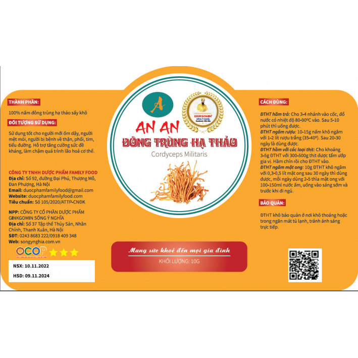 Nấm Đông Trùng Sấy Khô Lọ 10g