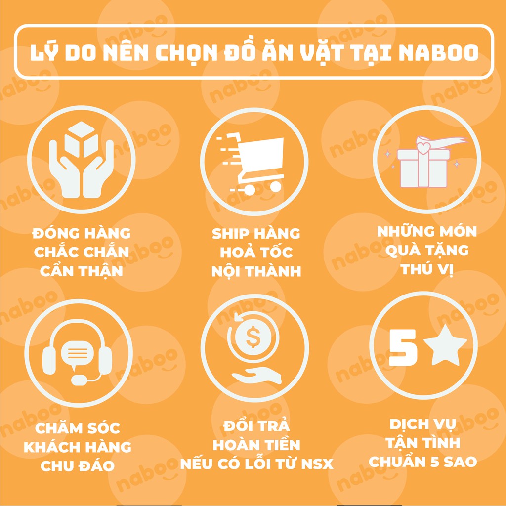 - Hạn sử dụng: 06 tháng kể từ ngày sản xuất Cảm ơn các bạn, chúc các bạn ngon miệng với RONG BIỂN CHÁY TỎI của Naboo Và còn rất nhiều đồ ăn vặt khác tại Naboo , khi nhận hàng đừng quên đánh giá sản phẩm nha <3
